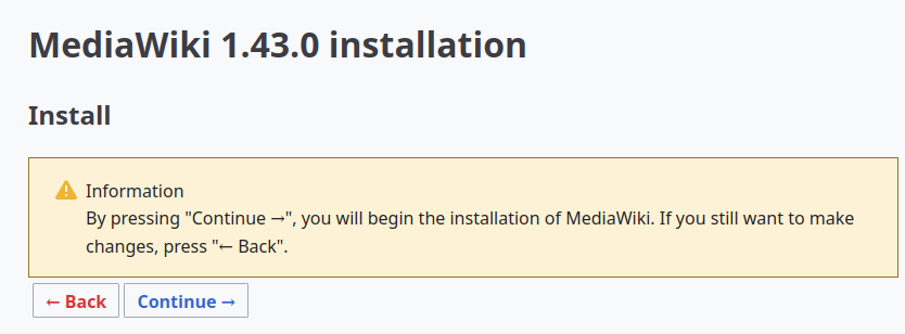 - You should now have a functional installation of MediaWiki with a MariaDB back-end running in a docker container.